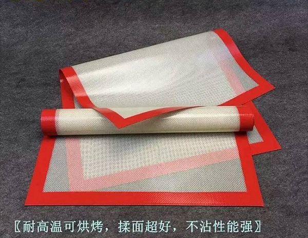Silicone baking mat adopt high strength glass fiber mesh cloth as the substrate, coated with food grade silicone, So both the flexibility of fiber toughness and silica gel. It is the ideal auxiliary article for baking food.